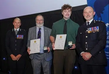 The father and son were awarded gold medals at the National Police Chiefs’ Council’s annual Police Public Bravery Awards for a courageous “selfless act.”